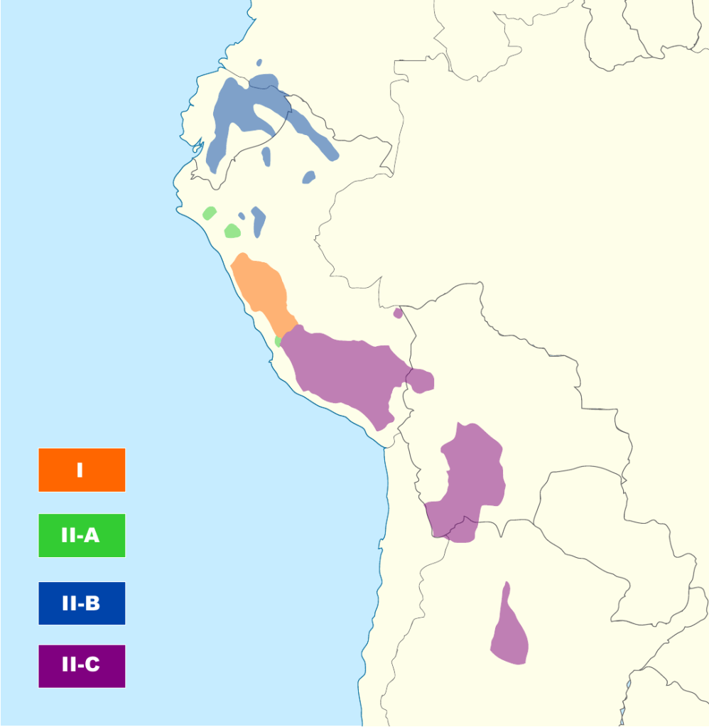 [*] I got the Quechua map from https://en.wikipedia.org/wiki/Quechuan_languages#/media/File:Quechua_(subgrupos).svg